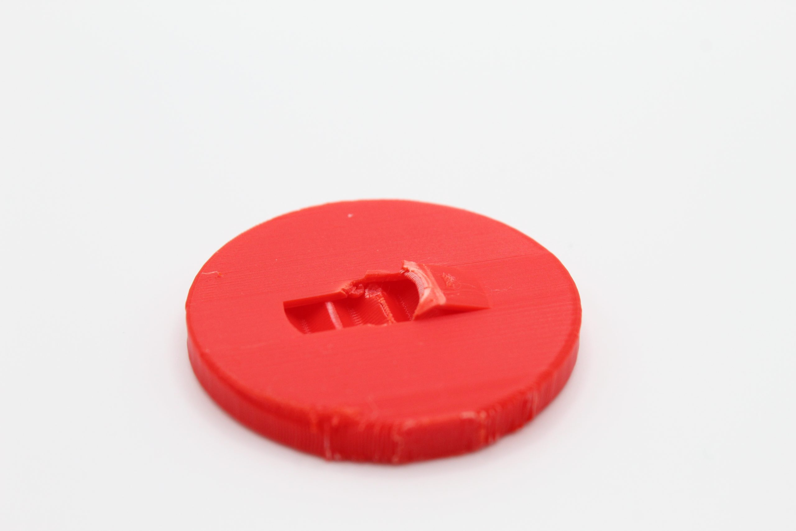 Part after testing, notice how the layers stuck together and the part took some of the circle face with it.