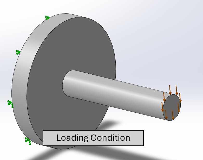 To show how some simple changes can make strong 3D printed parts we are going to use a axle like part with the shown loading condition below (Figure 3). To test the strength of the part, they will be broken and then given a rating on how difficult it was to break on a scale of 1-10.