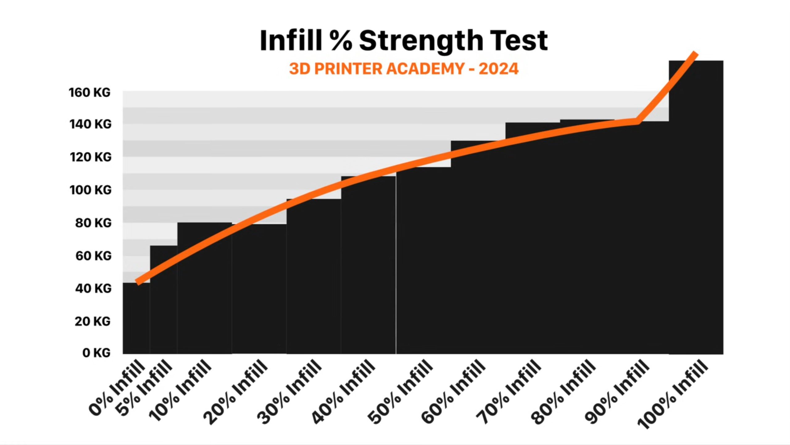 Slicing is another way to increase a parts strength. The two main things that you can do are increase the infill percentage and the number of wall loops. Doing both of these things can dramatically increase the strength of a 3D printed part. A test done by the YouTube Channel, 3D Printer Academy, found that a 10mm x 10mm block can hold as much as 350 pounds at 100% infill! (Watch the full video here, 3:45-9 mins)