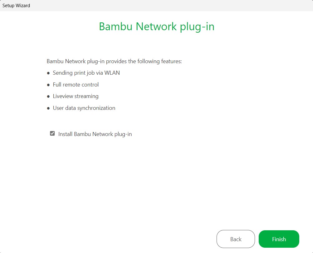 4. Once Completed click next, then close the installer, Bambu Studio set up wizard should open.